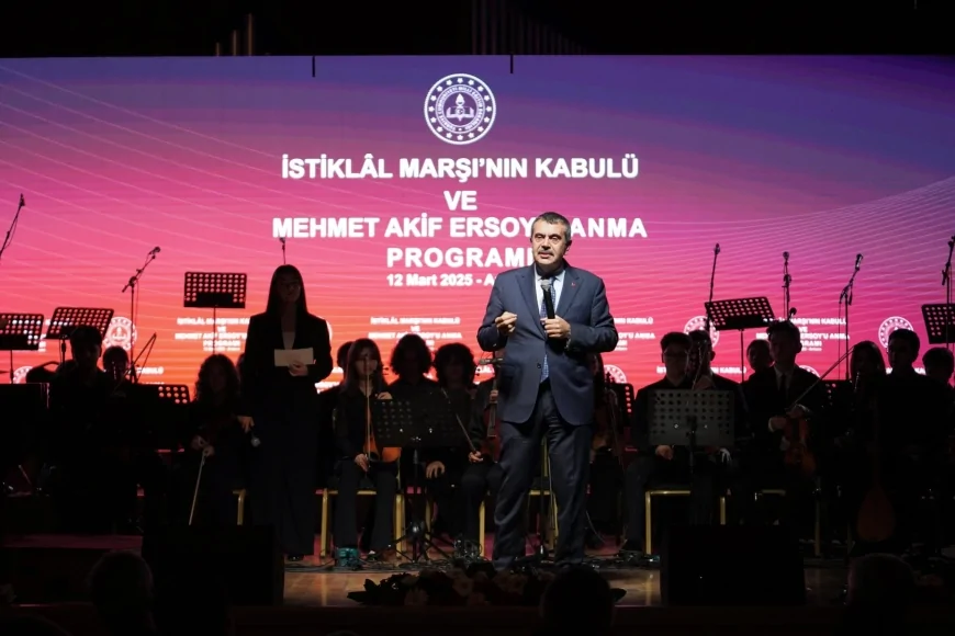 Programda konuşan Bakan Tekin, öğrenci, veli ve öğretmenlerle birlikte anlamlı bir gün geçirdiklerini belirterek, İstiklal Marşı’nın kabul yıl dönümünün önemine vurgu yaptı. Kurtuluş mücadelesinin üzerinden bir asır geçtiğini hatırlatan Bakan Tekin, bağımsızlık mücadelesini veren neslin bu emaneti gençlere bıraktığını ifade ederek, şunları söyledi: “Önümüzdeki yüzyılı ‘Türkiye Yüzyılı’ yapmak için gençlerimize önemli bir sorumluluk emanet ediyoruz. Bu emaneti hakkıyla taşıyabilmeleri için yepyeni bir müfredatla yola çıktık: Türkiye Yüzyılı Maarif Modeli. Amacımız, bu ülkenin bir daha İstiklal Marşı’nın yazılmasını gerektirecek koşullarla karşılaşmaması. Gençlerimiz, millî değerlerine, bağımsızlığına, örf ve ahlakına sahip çıkabilsin diye yeni bir eğitim modeliyle ilerliyoruz.”