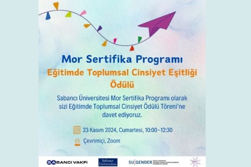 Sabancı Üniversitesi SU Gender tarafından düzenlenen ve bu yıl üçüncüsü gerçekleştirilecek olan Eğitimde Toplumsal Cinsiyet Eşitliği Ödülleri, Mor Sertifika Programı kapsamında yürütülüyor. Ödüller, öğretmenlerin ve öğretmen adaylarının toplumsal cinsiyet eşitliği üzerine geliştirdiği ve uyguladığı projeleri desteklemek, paylaşmak ve yaygınlaştırmak amacıyla veriliyor.