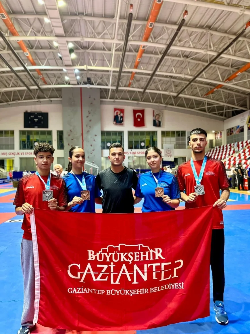 Muş’ta gerçekleştirilen Türkiye Karate Premier Ligi’ne 30 ilden 900 sporcu katılırken, Gaziantep Belediyespor kulübü sporcuları 12 madalya ile turnuvayı tamamladı. Eren Akkurt altın, Deniz Varlık Erdem ve Mustafa Malki gümüş, Salih Sunar, Yasin Uçar, Ali Akbağ, Yağmur Demir, Aleyna Ezgi Çelik ve Nisanur Ulaşlı bronz madalya kazandı.